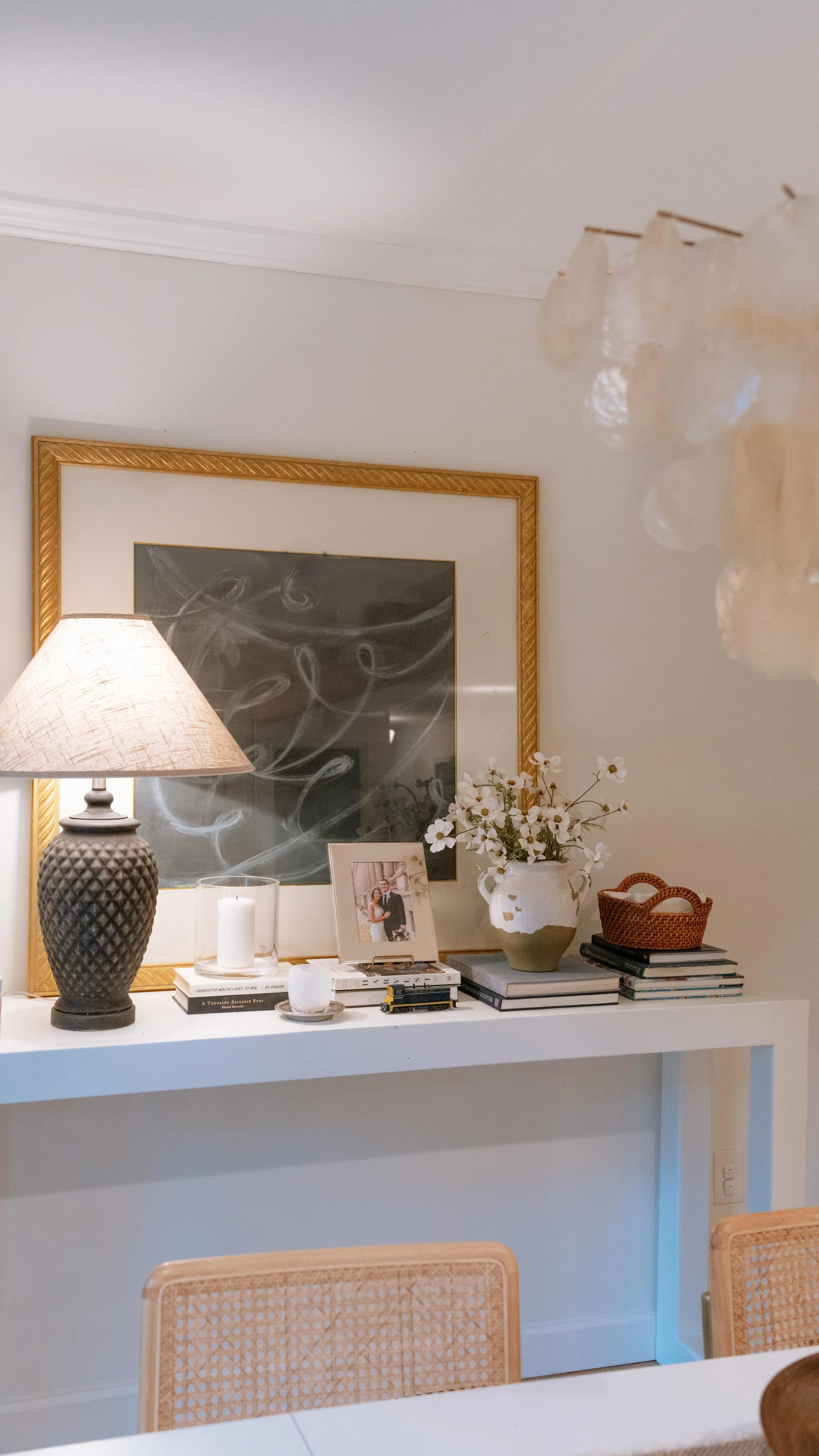 Scale is, in my opinion, the single most important factor in a well-designed space. I often see super huge furniture crammed into a tiny room, or conversely small IKEA furniture in a space with soaring ceilings. Our last house had 16 foot ceilings, and even average-sized furniture seemed tiny in a space with so much volume. I chose very large light fixtures and furniture to fill the space. But when we moved into this house, we had a different dilemma. This house has standard 9-foot ceilings, which meant that the scale of everything else needed to feel proportional.